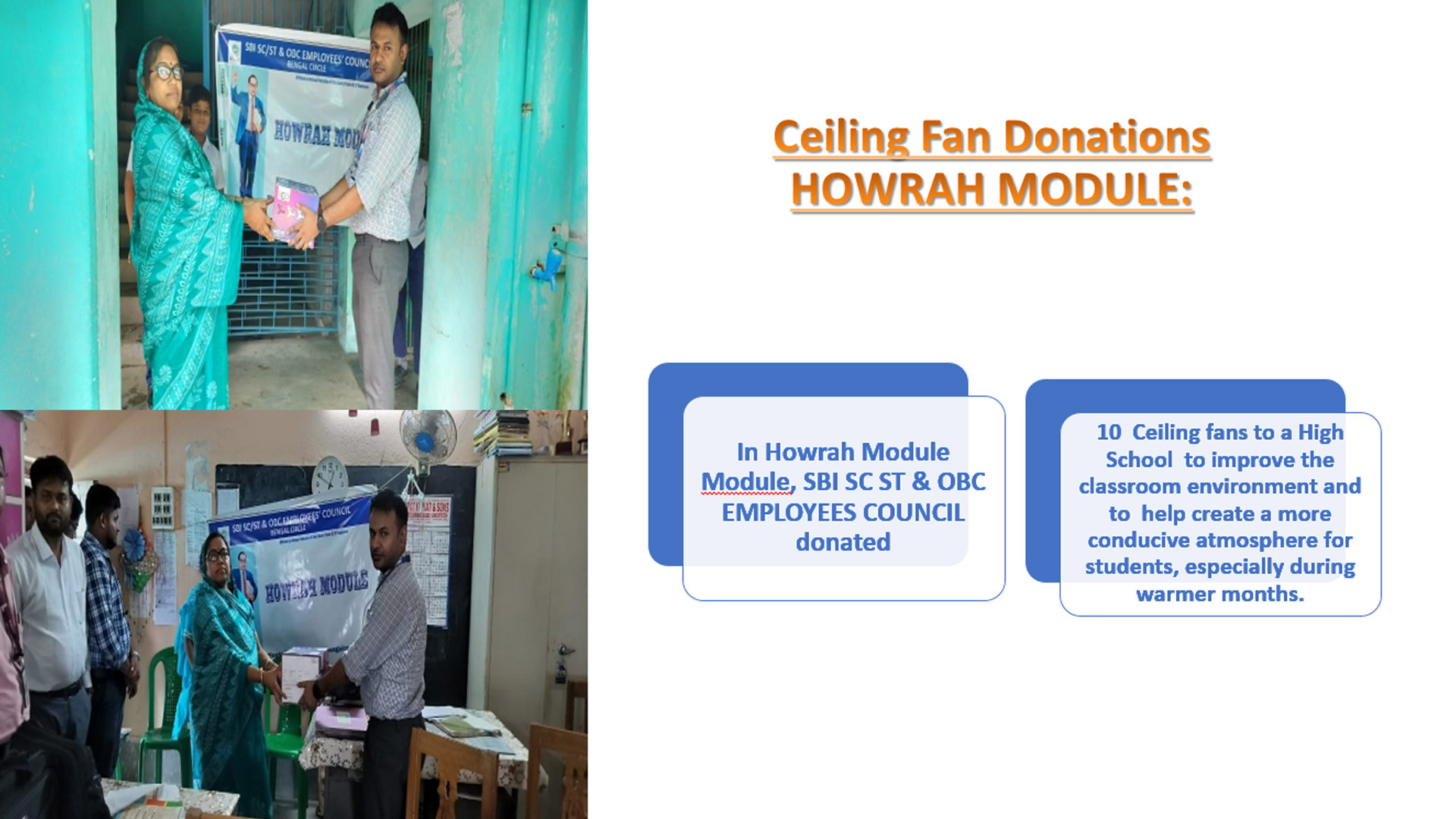 Ceiling fans were distributed to a local school to improve classroom comfort for students.