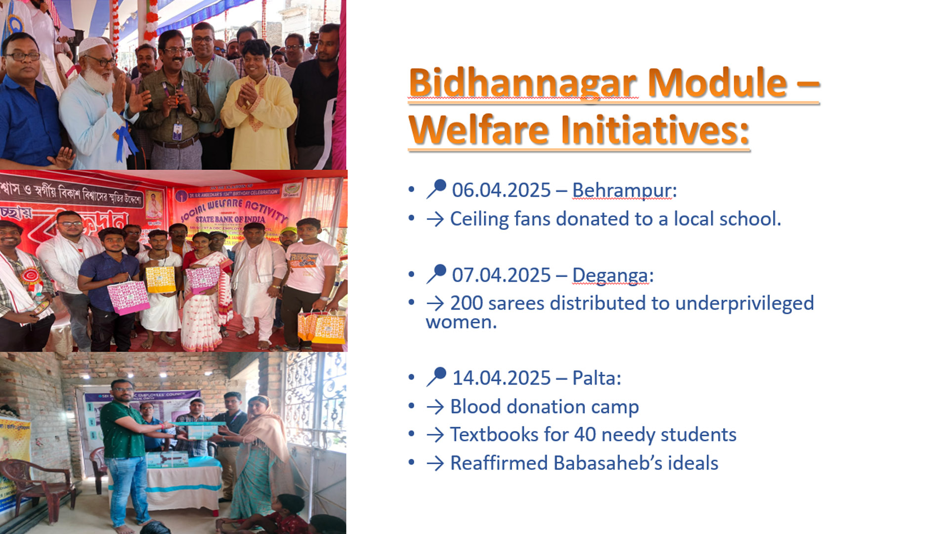 134th Birth Anniversary of Bharat Ratna Dr. B.R. Ambedkar, the SBI SC/ST & OBC Employees' Council organized a series of welfare activities across various locations.
