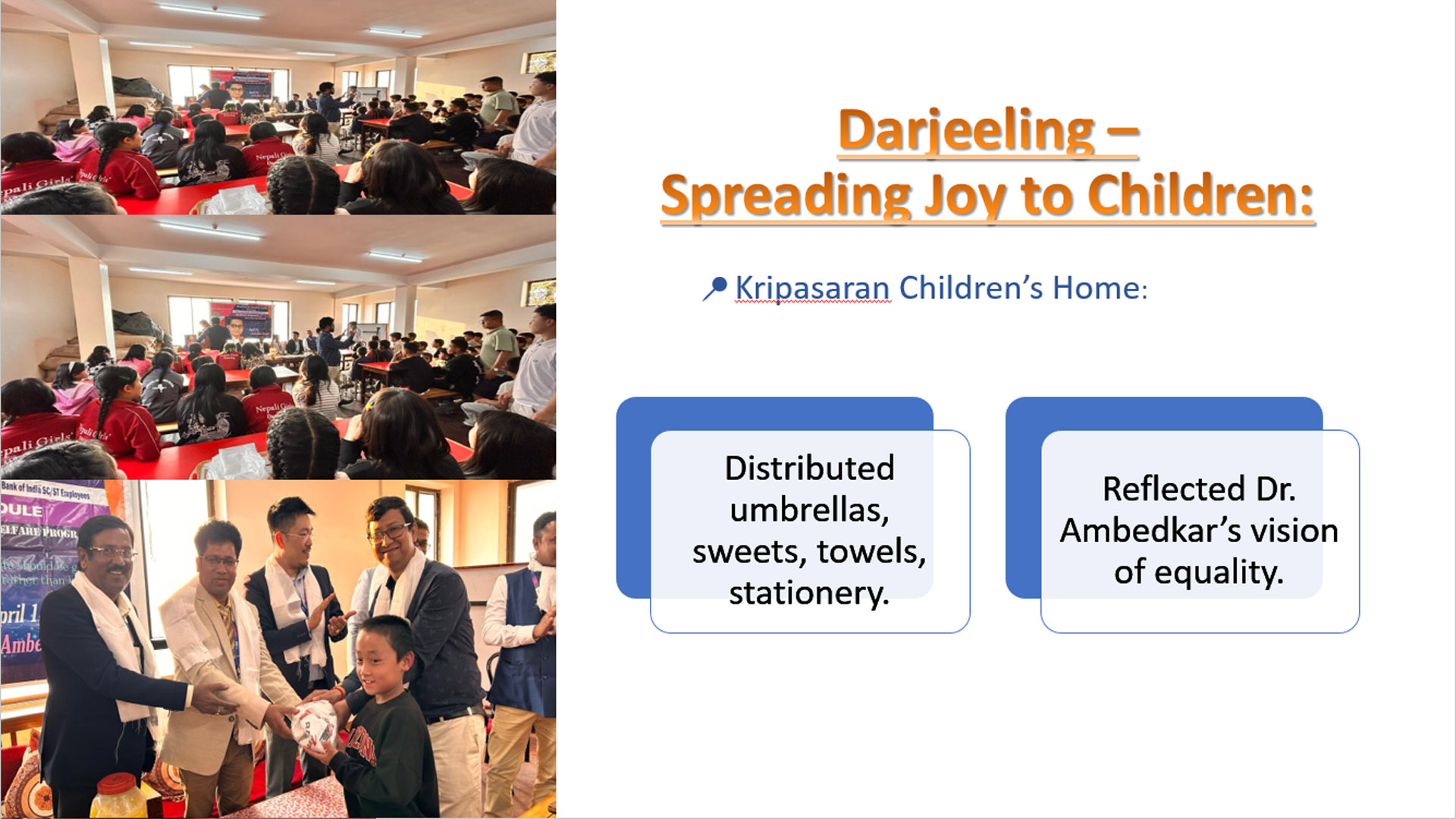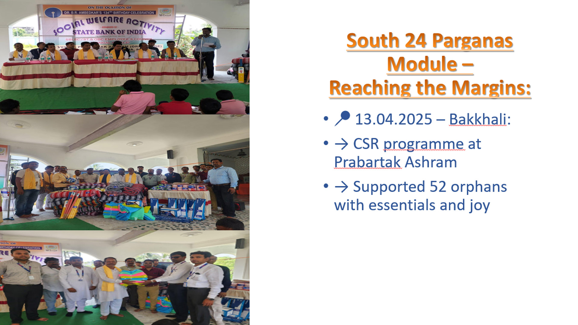 A CSR programme was organized at Prabartak Ashram, home to over 52 orphans, offering support and spreading joy.