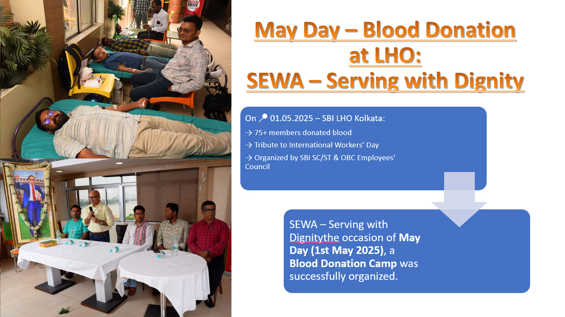 SEWA – Serving with Dignity the occasion of May Day (1st May 2025), a Blood Donation Camp was successfully organized.