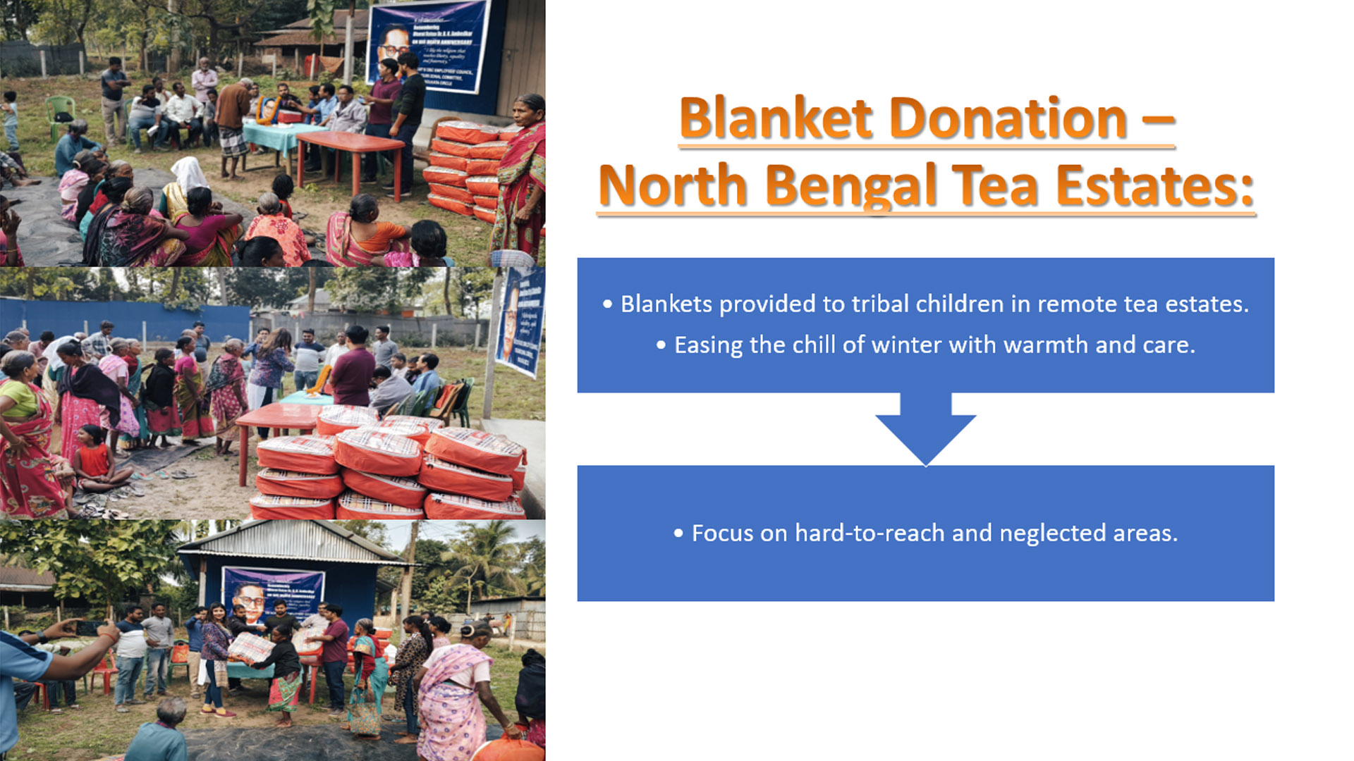 A total of 1000 blankets were distributed amongst economically weaker section of