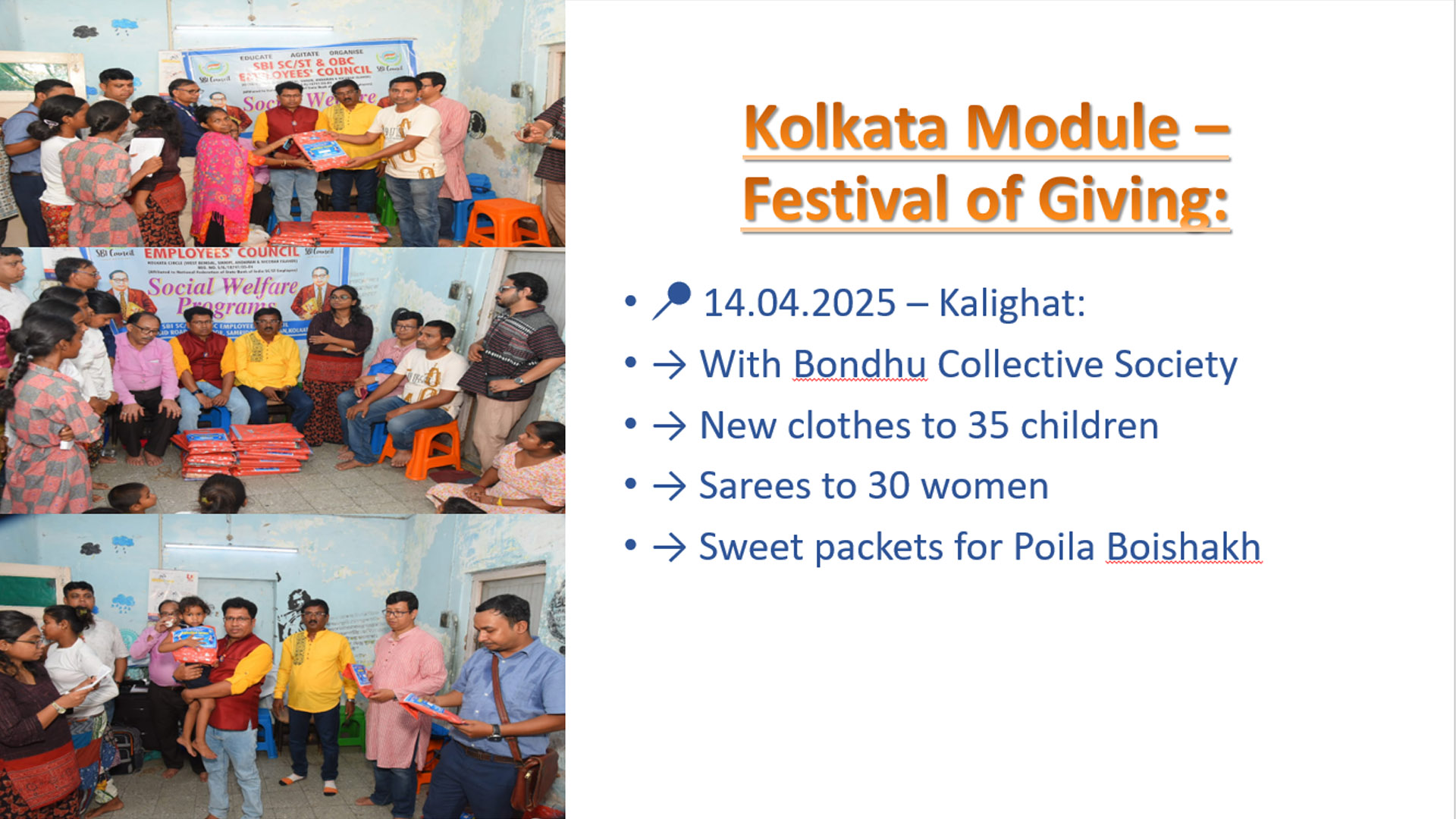 134th Birth Anniversary of Bharat Ratna Dr. B.R. Ambedkar, the SBI SC/ST & OBC Employees' Council organized a series of welfare activities across various locations.